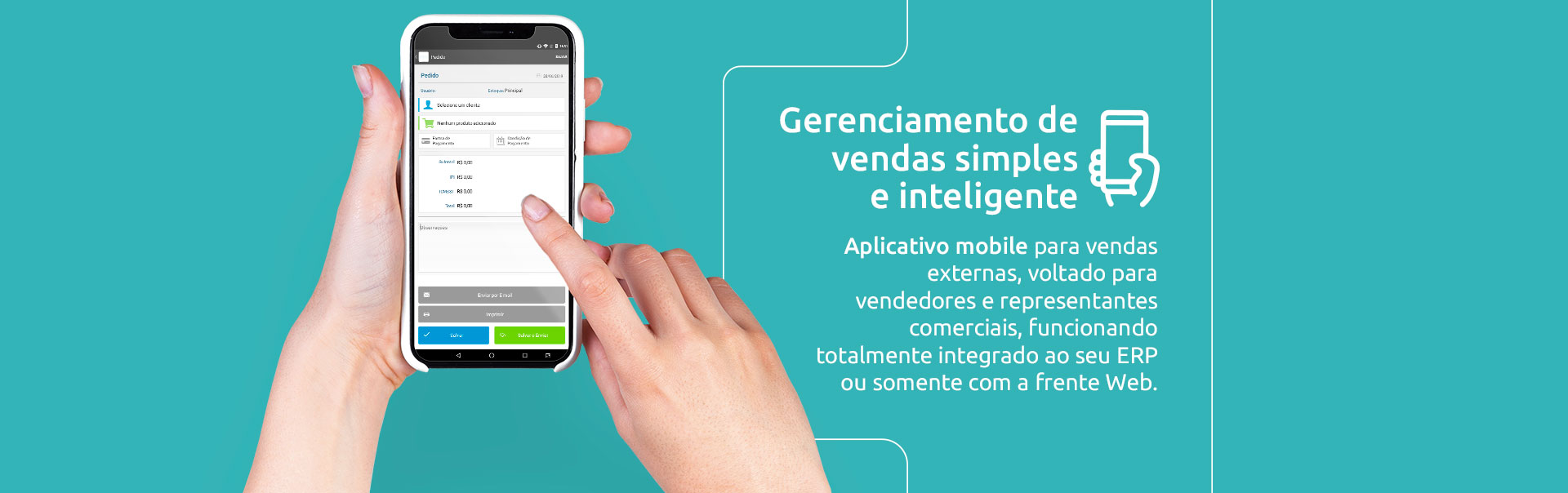 Nossa solução vai muito além do que oferecer uma ferramenta completa para vendas e representantes, nossa ferramenta oferece uma api que permite integrar facilmente em ERPs de terceiros e deixar ainda mais completo o processo de sua empresa, já contamos com mais de 100 software houses já parceiros utilizando nossa solução.